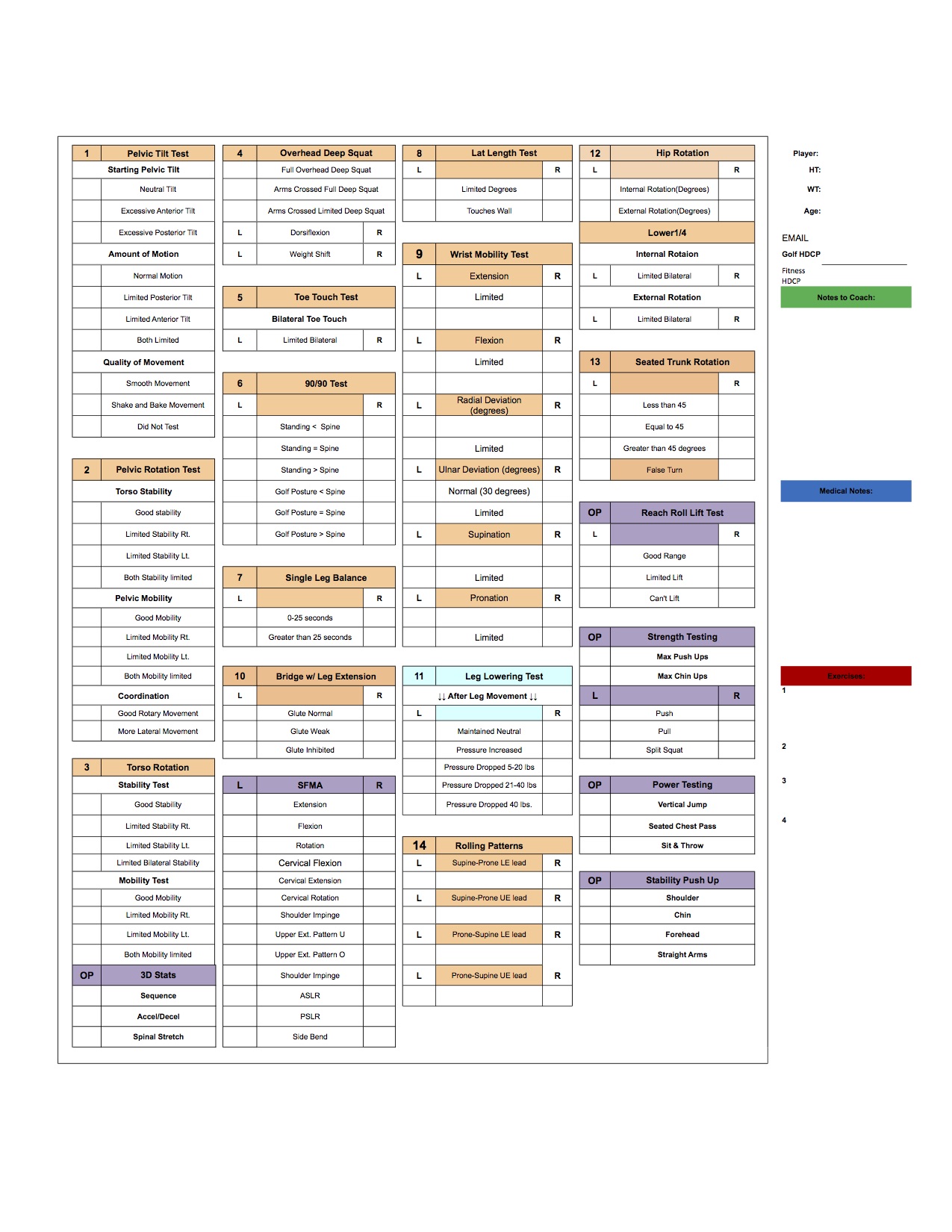 - Identifies any dysfunctional movement patterns that may be affecting your game